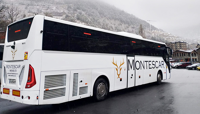 Se trata del vehículo más grande de Montescar, con 59 plazas, tiene 12m de longitud, garantizando un mayor confort a nuestros clientes en el trayecto de los viajes, sus características hacen que sea un autobús idóneo, para traslados de grupos numerosos, por sus especiales características en cuanto a capacidad, maniobrabilidad por su gran eje trasero y gran capacidad de bodega para el transporte del equipaje. Gracias a todas estas características, nuestro autobús también es especial, ya que podemos contar con 14 plazas PMR y dejando 10 plazas normales.